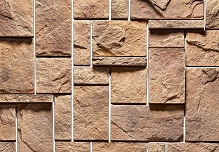 Массивный прямоугольный декоративный камень разных размеров с грубо обработанной поверхностью. "Средневековый замок" придаст зданию строгий, монументальный вид. Оригинальный вариант для отделки фасада.